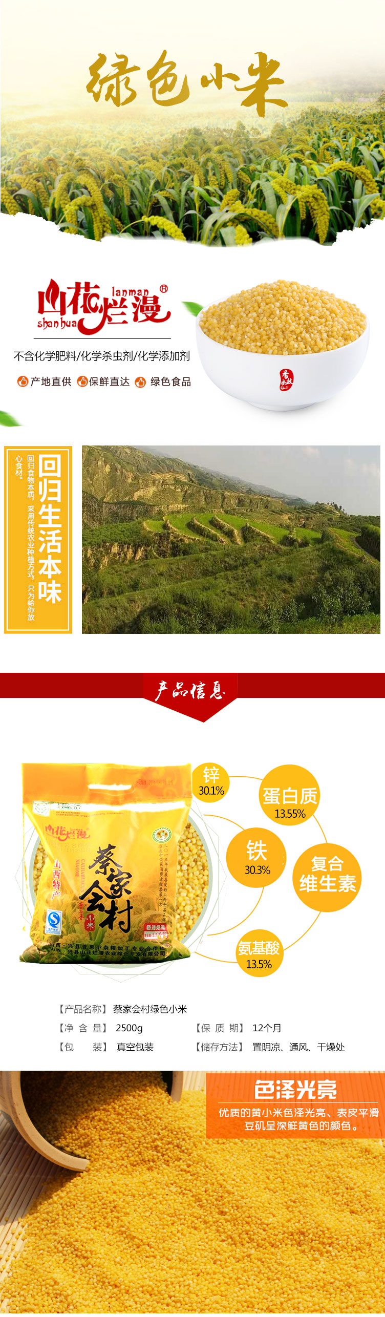 山花爛漫蔡家會村小米 山花爛漫綠色小米家庭實用裝
