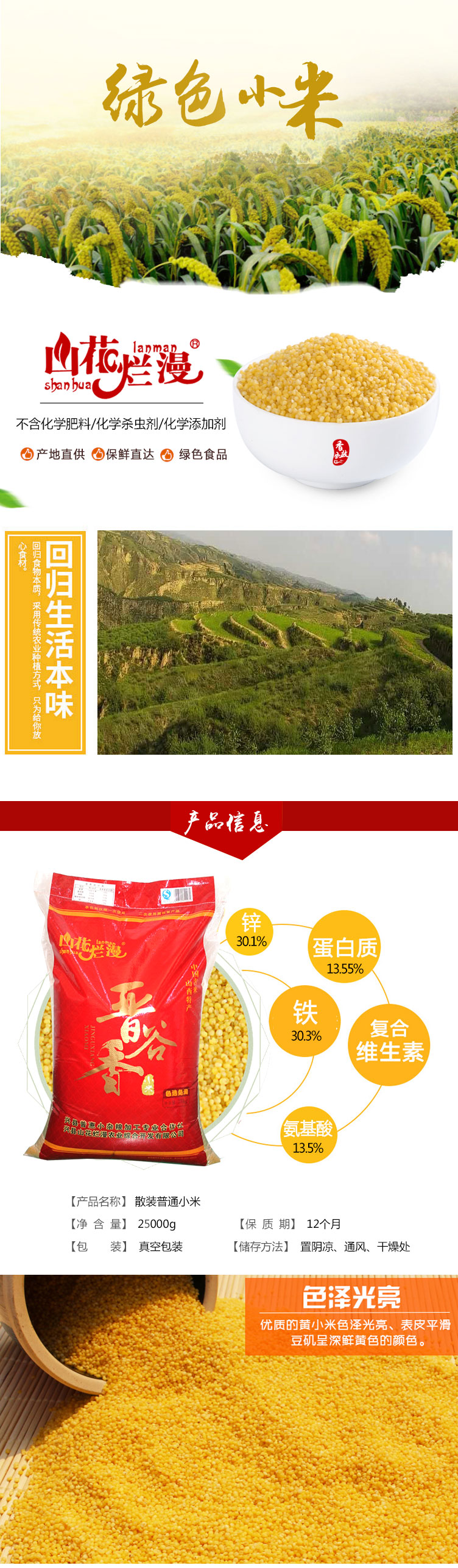 山花爛漫蔡家會村小米 山花爛漫綠色小米家庭實用裝