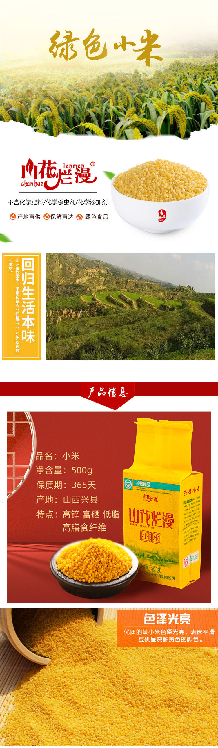 山花爛漫蔡家會村小米 山花爛漫綠色小米家庭實用裝